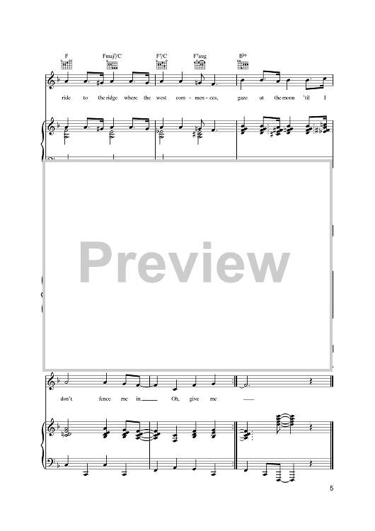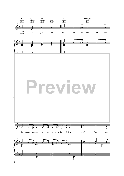 Digital Sheet Music for Don't Fence Me In by Cole Porter scored for Piano/Vocal/Chords; id:401918
