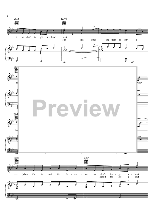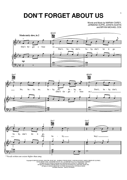 Digital Sheet Music for Don't Forget About Us by Mariah Carey, Jermaine Dupri, Bryan-Michael Cox, Johnta Austin scored for Piano/Vocal/Chords; id:388238