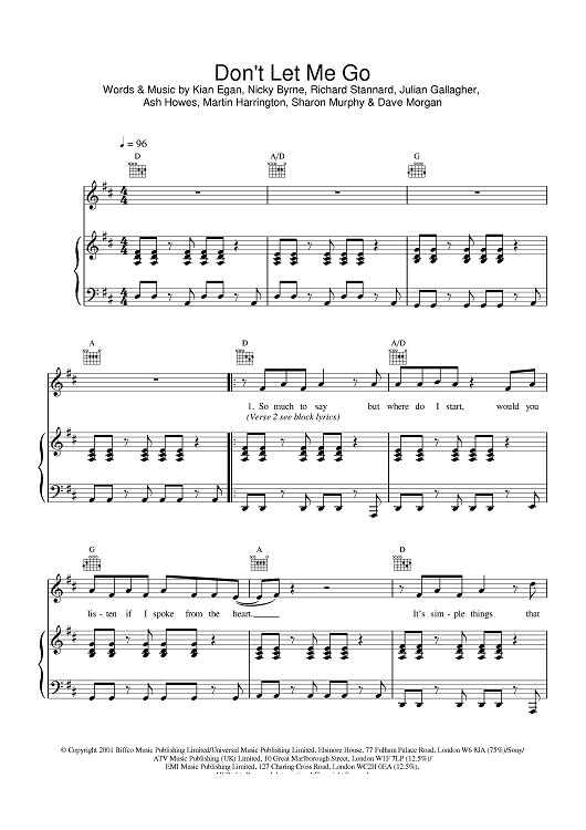 Digital Sheet Music for Don't Let Me Go by Westlife, Kian Egan scored for Piano/Vocal/Chords; id:380169