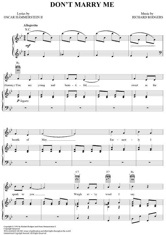 Digital Sheet Music for Don't Marry Me by Richard Rodgers, Oscar Hammerstein II scored for Piano/Vocal/Chords; id:367041