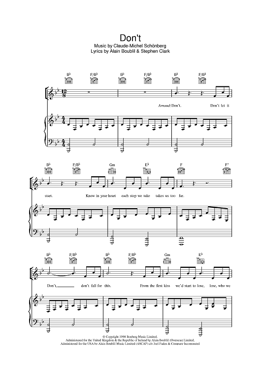 Digital Sheet Music for Don't by Claude-Michel Schonberg, Alain Boublil scored for Piano/Vocal/Chords; id:390036