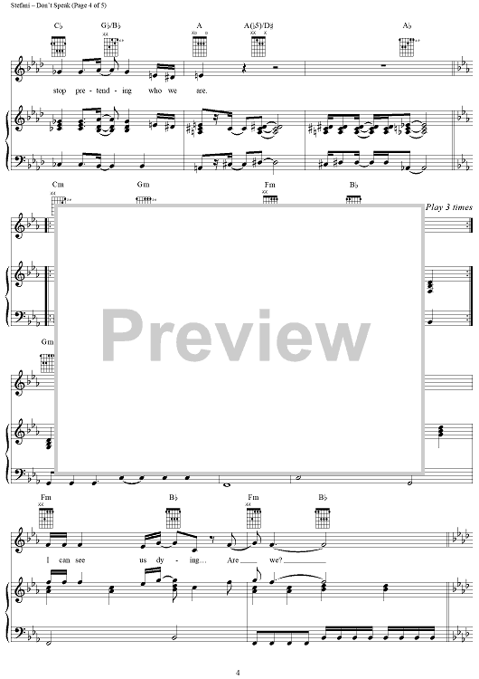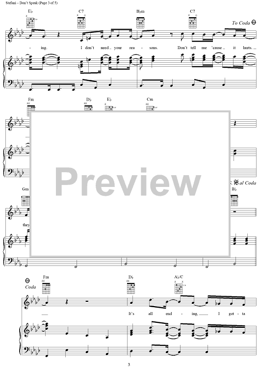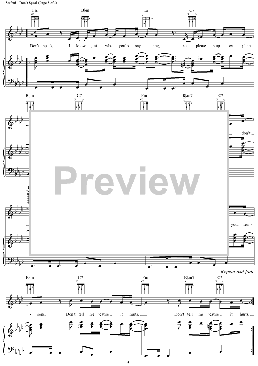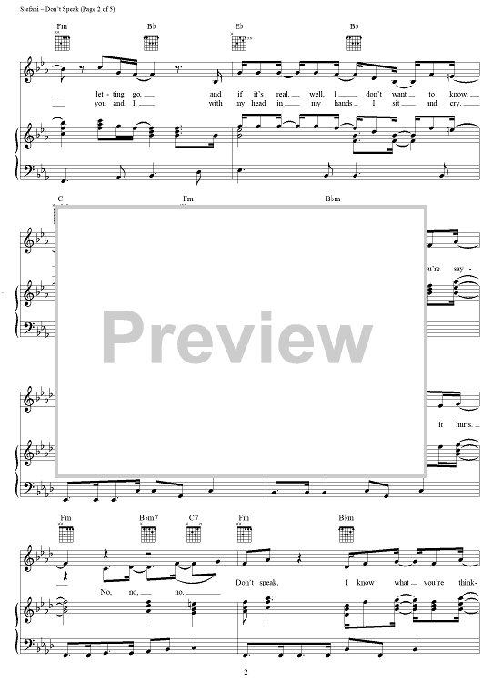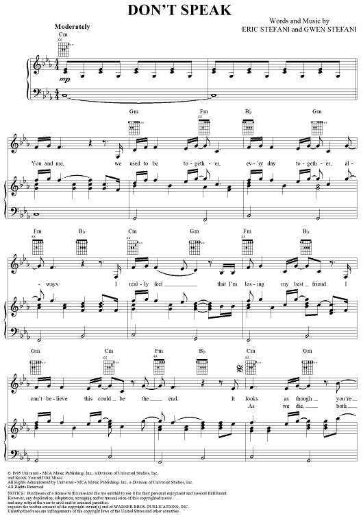 Digital Sheet Music for Don't Speak by No Doubt, Eric Stefani, Gwen Stefani scored for Piano/Vocal/Chords; id:241903