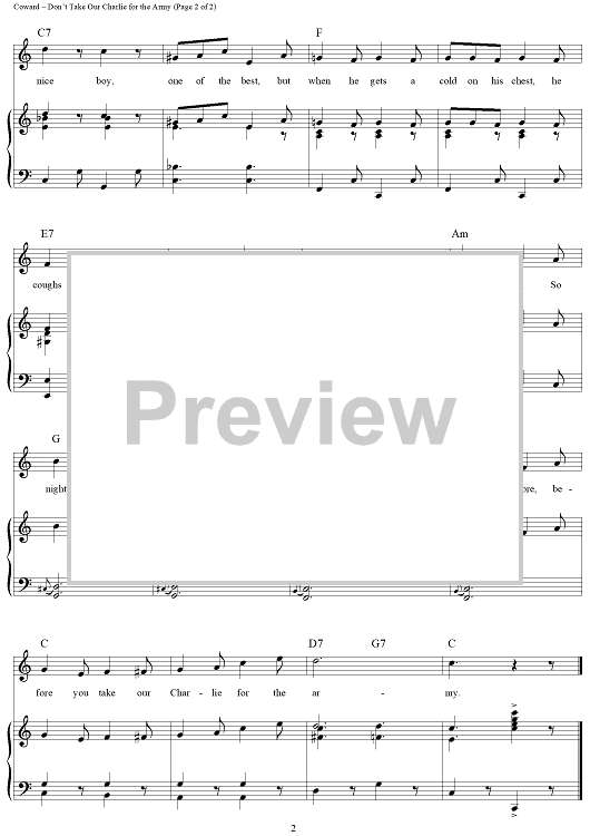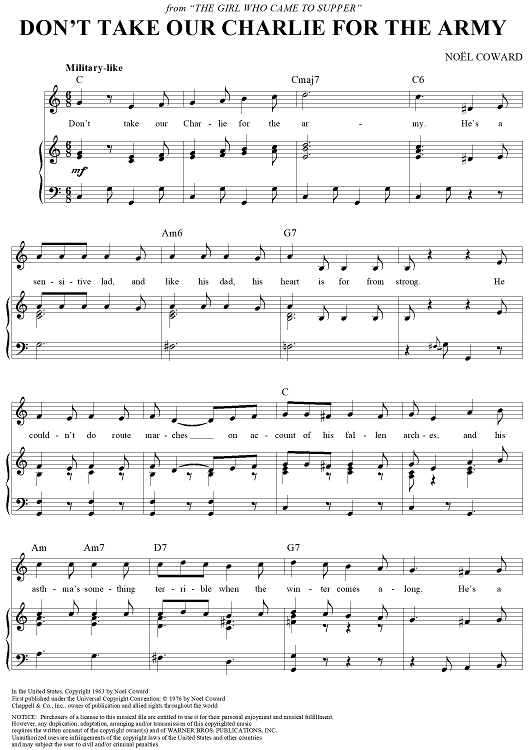 Digital Sheet Music for Don't Take Our Charlie for the Army by Noel Coward scored for Piano/Vocal/Chords; id:357018