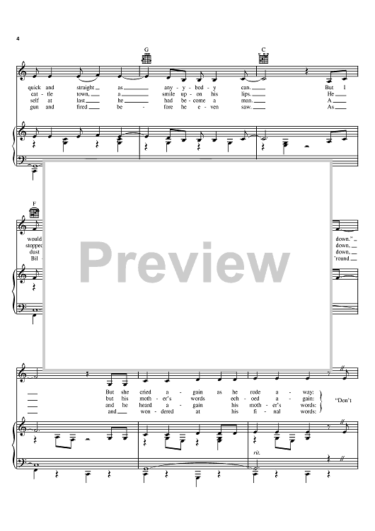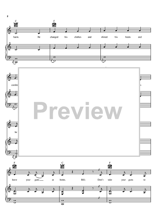 Digital Sheet Music for Don't Take Your Guns To Town by Johnny Cash, U2 scored for Piano/Vocal/Chords; id:381360