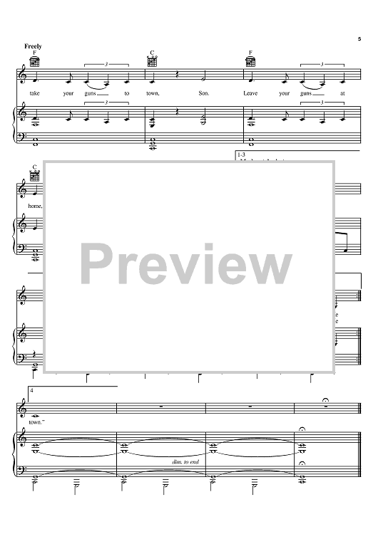 "Don't Take Your Guns To Town" Sheet Music by Johnny Cash