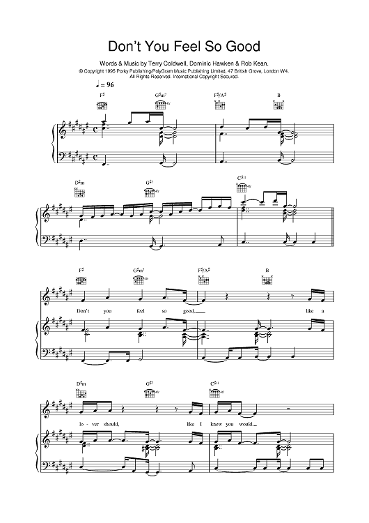Digital Sheet Music for Don't You Feel So Good by Terry Coldwell, East 17, Dominic Hawken scored for Piano/Vocal/Chords; id:379695