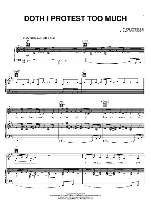 Digital Sheet Music for Doth I Protest Too Much by Alanis Morissette scored for Piano/Vocal/Chords; id:380353