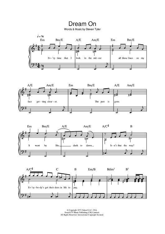 Digital Sheet Music for Dream On by Aerosmith, Steven Tyler scored for Piano/Vocal/Chords; id:396800