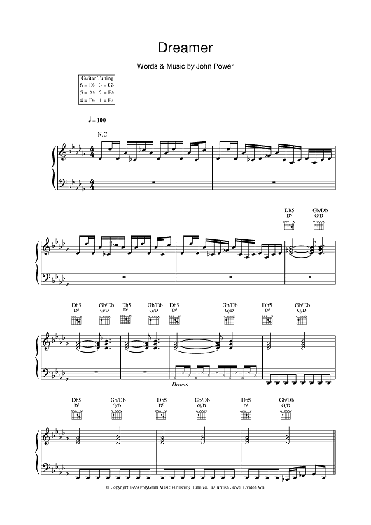 Digital Sheet Music for Dreamer by Cast scored for Piano/Vocal/Chords; id:376868