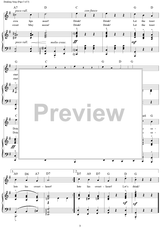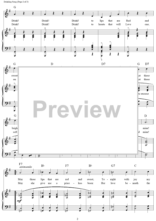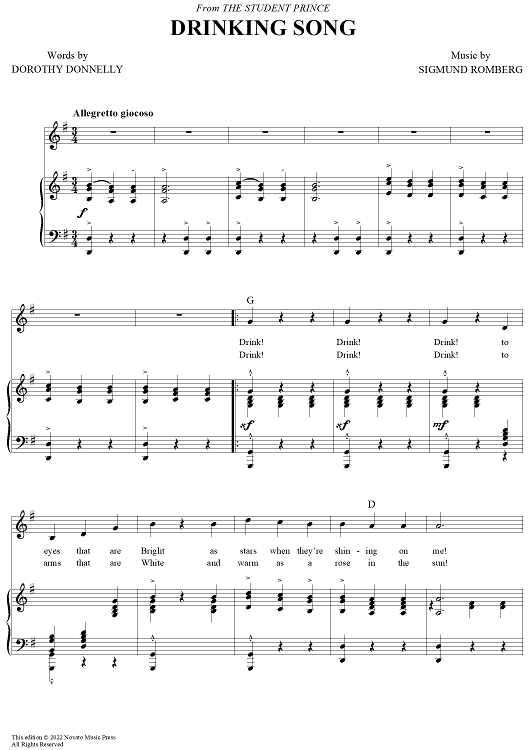 Digital Sheet Music for Drinking Song by Sigmund Romberg, Dorothy Donnelly scored for Piano/Vocal/Chords; id:112859