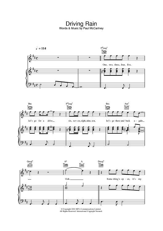 "Driving Rain" Sheet Music by Paul McCartney