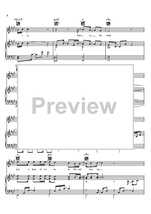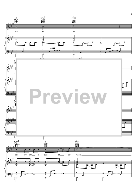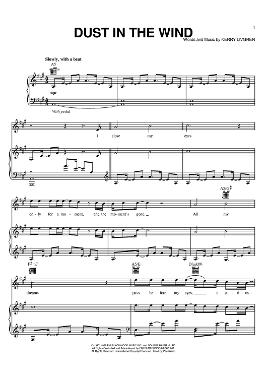 Digital Sheet Music for Dust In The Wind by Kerry Livgren, Kansas, William Joseph scored for Piano/Vocal/Chords; id:384626