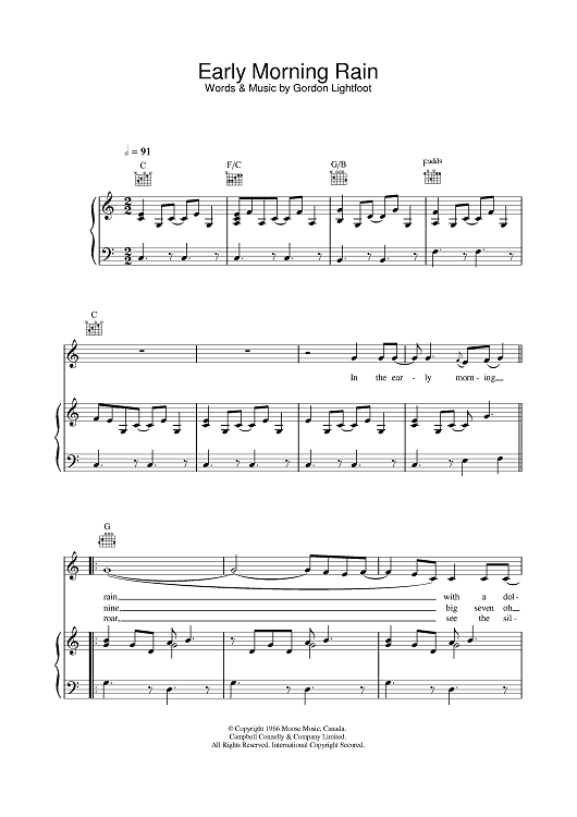 Digital Sheet Music for Early Morning Rain by Eva Cassidy scored for Piano/Vocal/Chords; id:378731