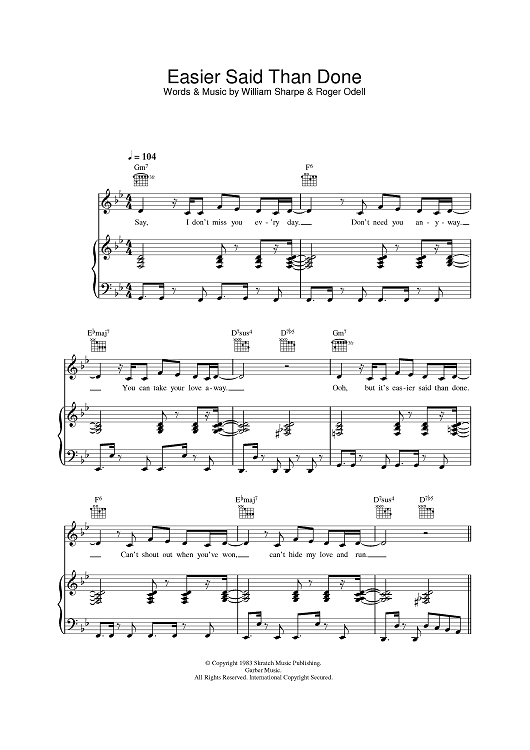 Digital Sheet Music for Easier Said Than Done by Roger Odell, Shakatak, William Sharpe scored for Piano/Vocal/Chords; id:401887