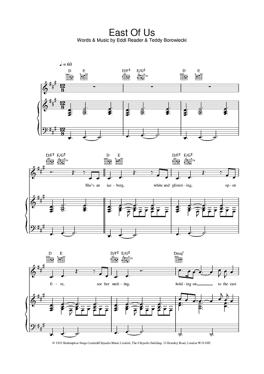 Digital Sheet Music for East Of Us by Eddi Reader scored for Piano/Vocal/Chords; id:375920