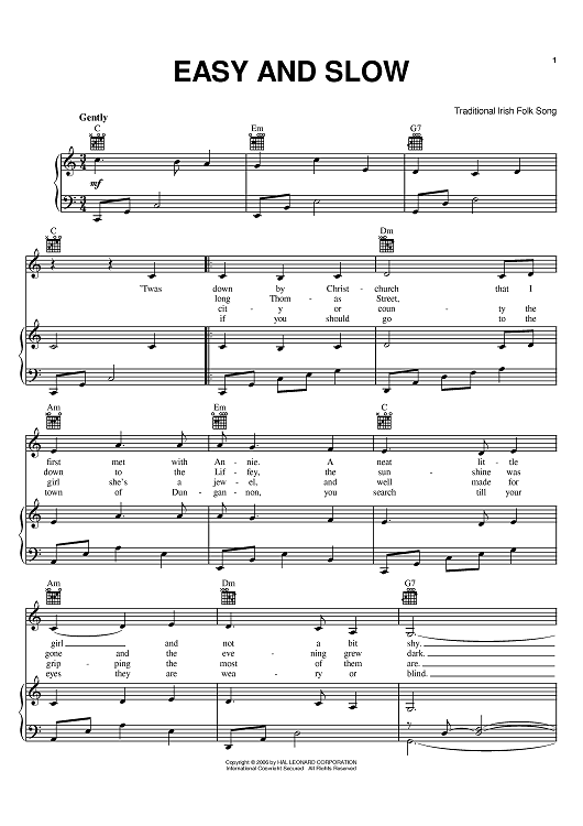 Digital Sheet Music for Easy And Slow by scored for Piano/Vocal/Chords; id:393951