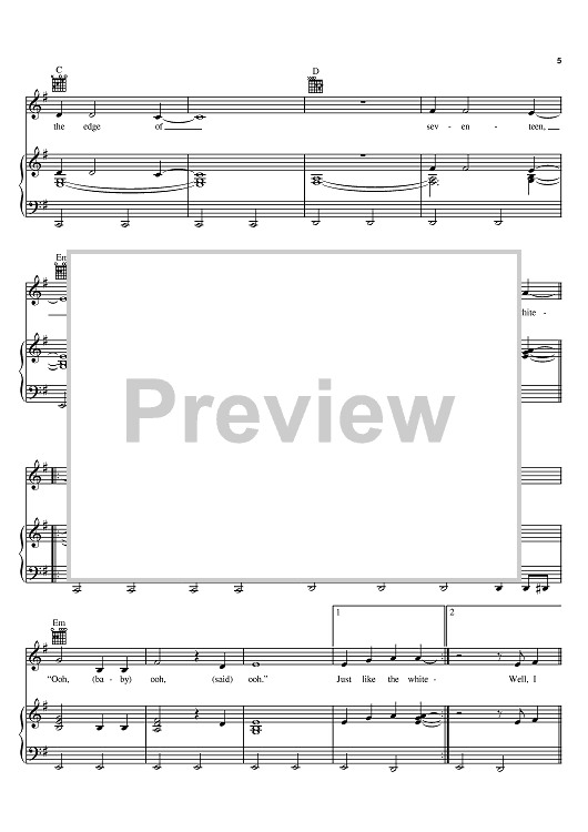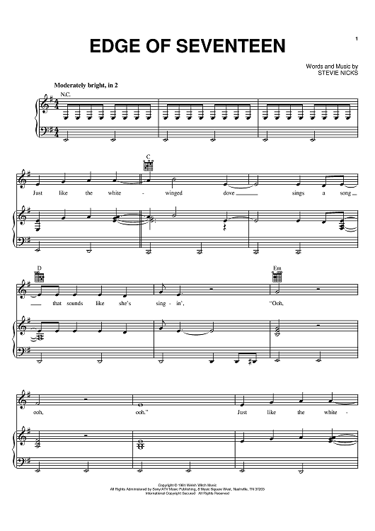 Digital Sheet Music for Edge Of Seventeen by Stevie Nicks scored for Piano/Vocal/Chords; id:397762