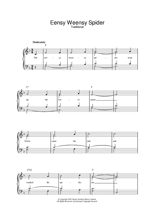 Digital Sheet Music for Eensy Weensy Spider by scored for Piano/Vocal/Chords; id:386126