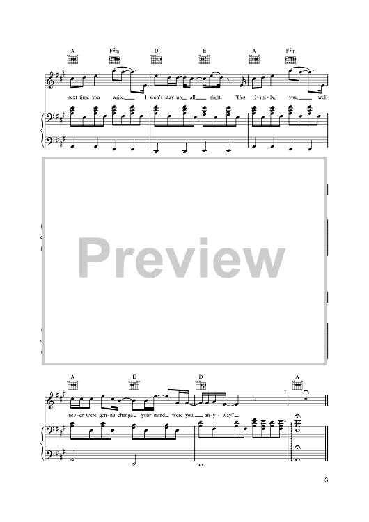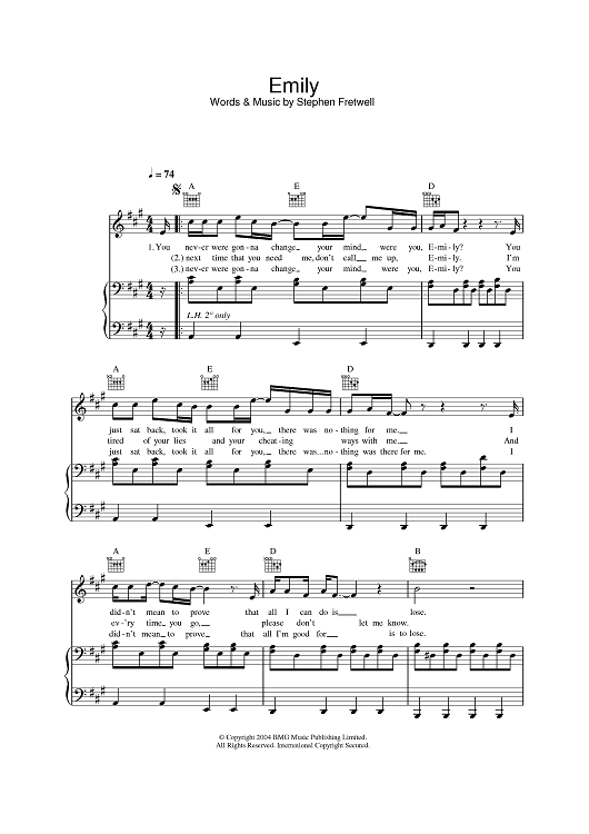 Digital Sheet Music for Emily by Stephen Fretwell scored for Piano/Vocal/Chords; id:386391