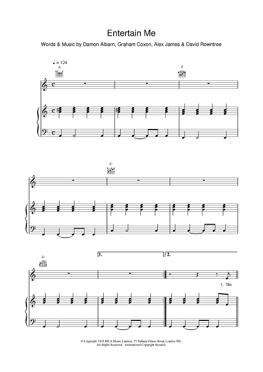 Digital Sheet Music for Entertain Me by Blur scored for Piano/Vocal/Chords; id:376032