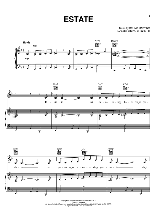 Digital Sheet Music for Estate by Bruno Brighetti, Joao Gilberto, Bruno Martino, John Pizzarelli scored for Piano/Vocal/Chords; id:383170