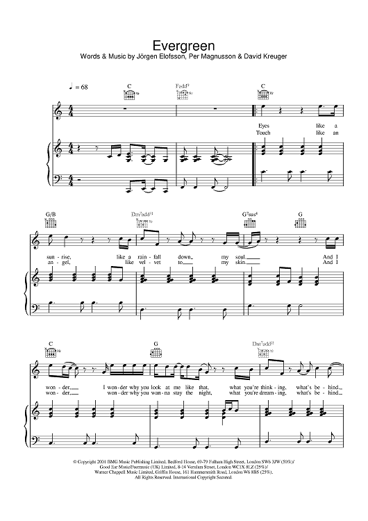 Digital Sheet Music for Evergreen by Westlife scored for Piano/Vocal/Chords; id:377510