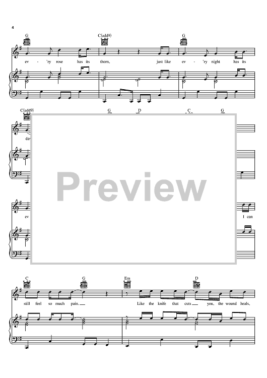 Digital Sheet Music for Every Rose Has Its Thorn by Poison, Bobby Dall, Rikki Rockett, C. C. DeVille, Brett Michaels scored for Piano/Vocal/Chords; id:395402