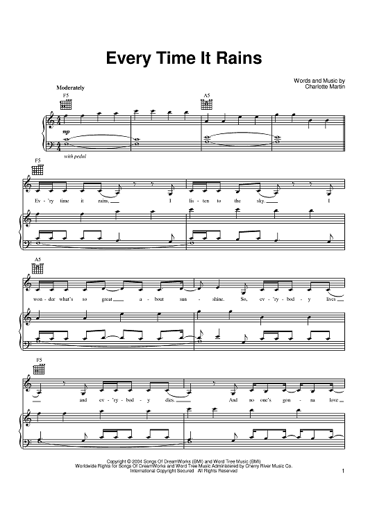 "Every Time It Rains" Sheet Music by Charlotte Martin