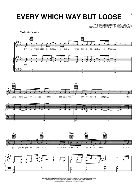 Digital Sheet Music for Every Which Way But Loose by Steve Dorff, Milton Brown, Eddie Rabbitt, Thomas Garrett scored for Piano/Vocal/Chords; id:388156