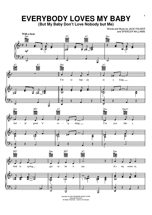 Digital Sheet Music for Everybody Loves My Baby (But My Baby Don't Love Nobody But Me) by Glenn Miller, Spencer Williams, Jack Palmer scored for Piano/Vocal/Chords; id:382723