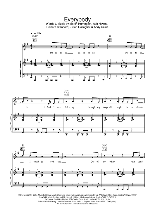 Digital Sheet Music for Everybody by Hear'Say scored for Piano/Vocal/Chords; id:377455