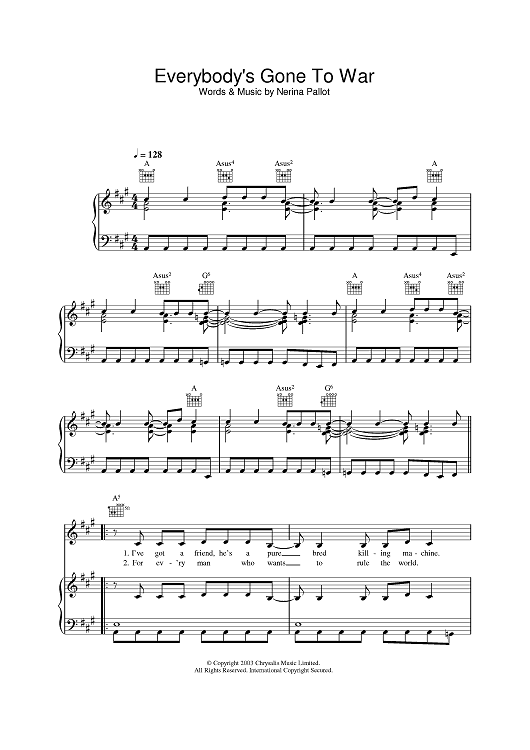 Digital Sheet Music for Everybody's Gone To War by Nerina Pallot scored for Piano/Vocal/Chords; id:392411
