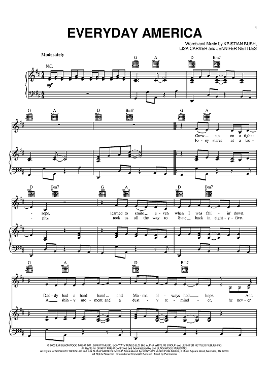 Digital Sheet Music for Everyday America by Kristian Bush, Lisa Carver, Jennifer Nettles, Sugarland scored for Piano/Vocal/Chords; id:398417