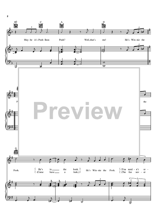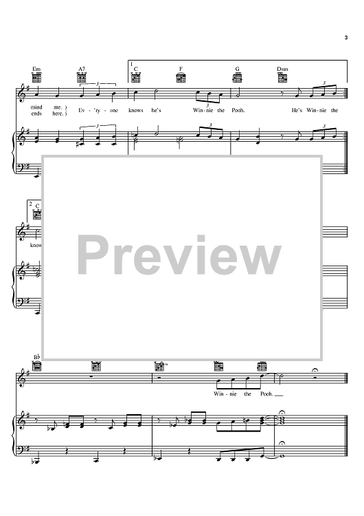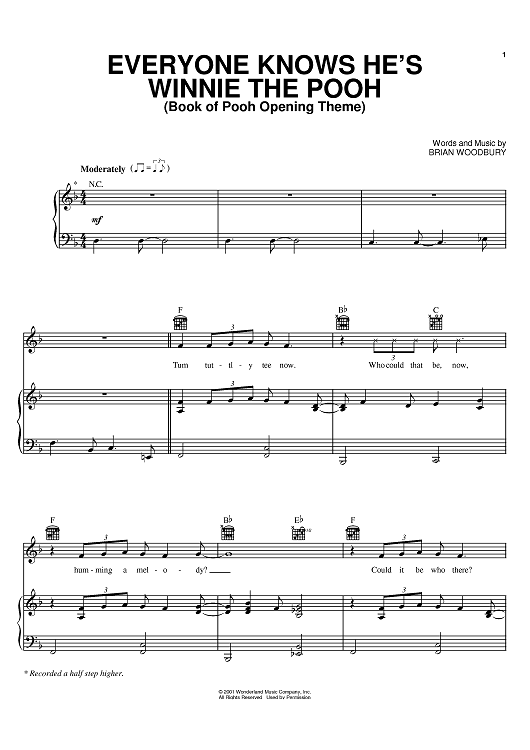 Digital Sheet Music for Everyone Knows He's Winnie The Pooh by Brian Woodbury scored for Piano/Vocal/Chords; id:375468
