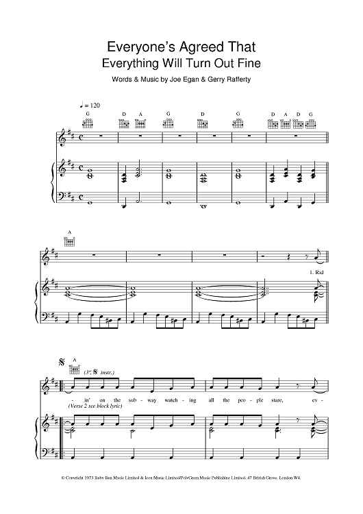 Digital Sheet Music for Everyone's Agreed That Everything Will Turn Out Fine by JOE EGAN, Gerry Rafferty scored for Piano/Vocal/Chords; id:379704