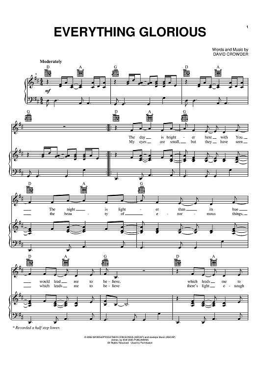 Digital Sheet Music for Everything Glorious by David Crowder, David Crowder Band scored for Piano/Vocal/Chords; id:402765
