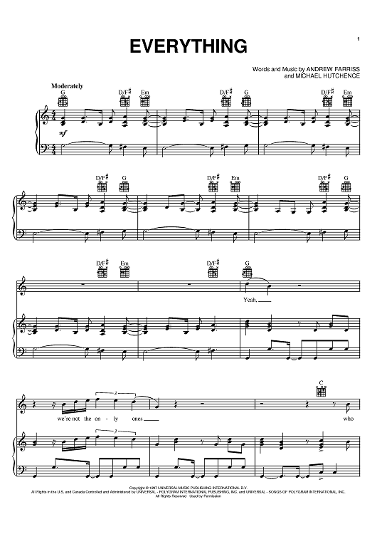 Digital Sheet Music for Everything by INXS, Andrew Farriss, Michael Hutchence scored for Piano/Vocal/Chords; id:379290