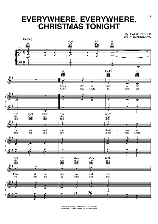 Digital Sheet Music for Everywhere, Everywhere, Christmas Tonight by Phillips Brooks, Lewis H. Redner scored for Piano/Vocal/Chords; id:398008