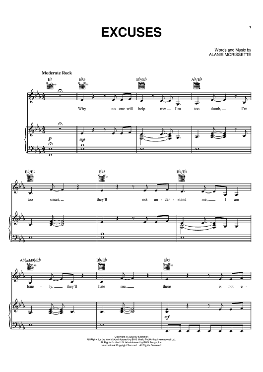 Digital Sheet Music for Excuses by Alanis Morissette scored for Piano/Vocal/Chords; id:380355