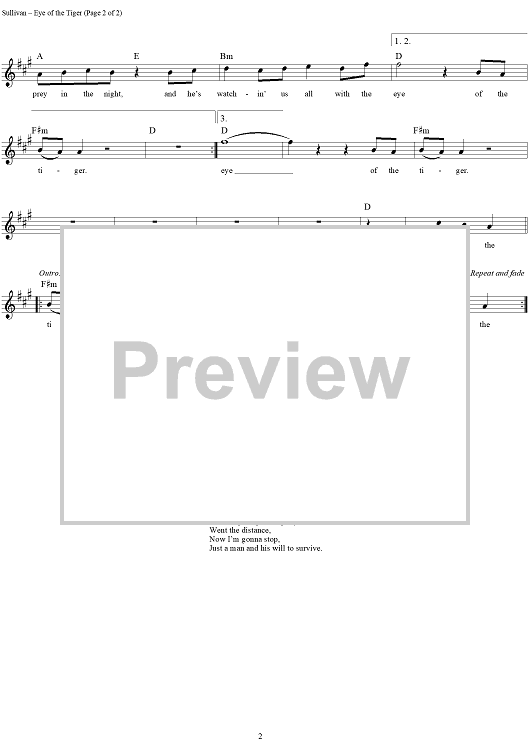 Digital Sheet Music for Eye of the Tiger by Frank Sullivan, Jim Peterik, Survivor scored for Lead Sheet; id:370902