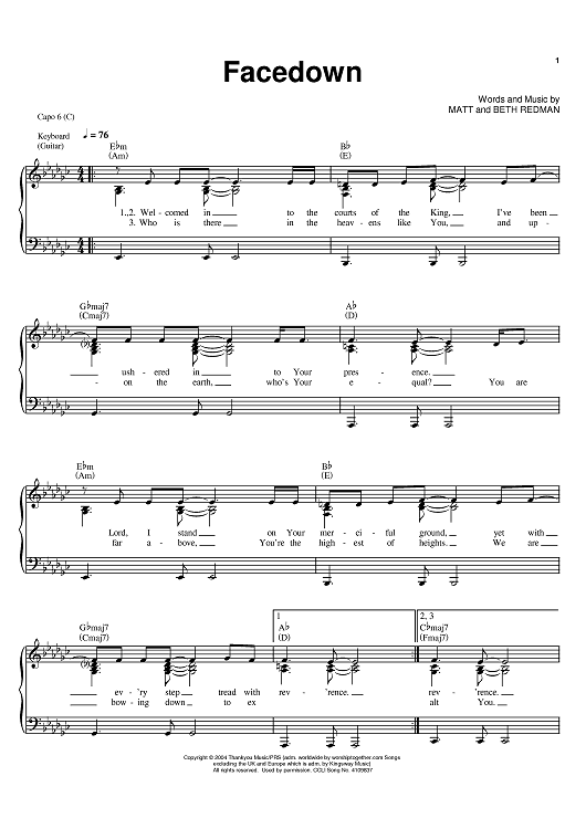 Digital Sheet Music for Facedown by Matt Redman, Beth Redman scored for Piano/Vocal/Chords; id:393794