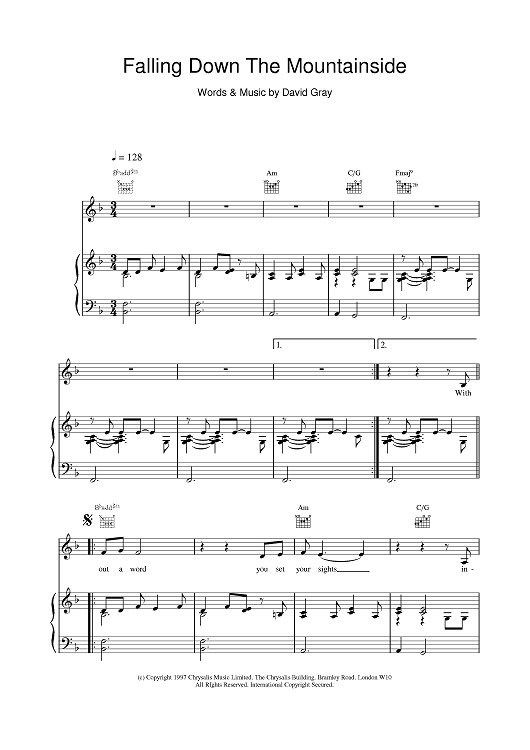 Digital Sheet Music for Falling Down The Mountainside by David Gray scored for Piano/Vocal/Chords; id:380026