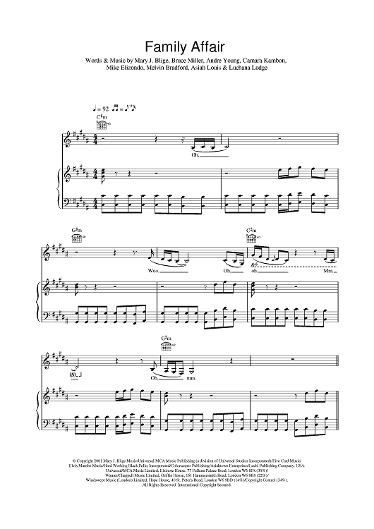 Digital Sheet Music for Family Affair by Mary J. Blige scored for Piano/Vocal/Chords; id:377567