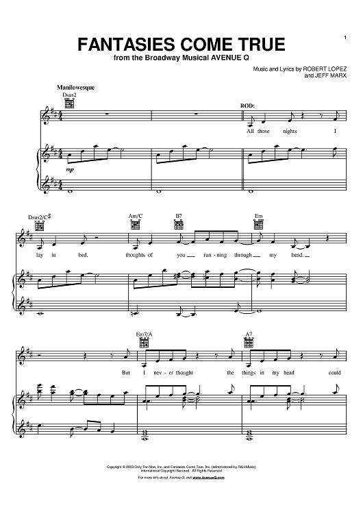 Digital Sheet Music for Fantasies Come True by Robert Lopez, Jeff Marx scored for Piano/Vocal/Chords; id:374773