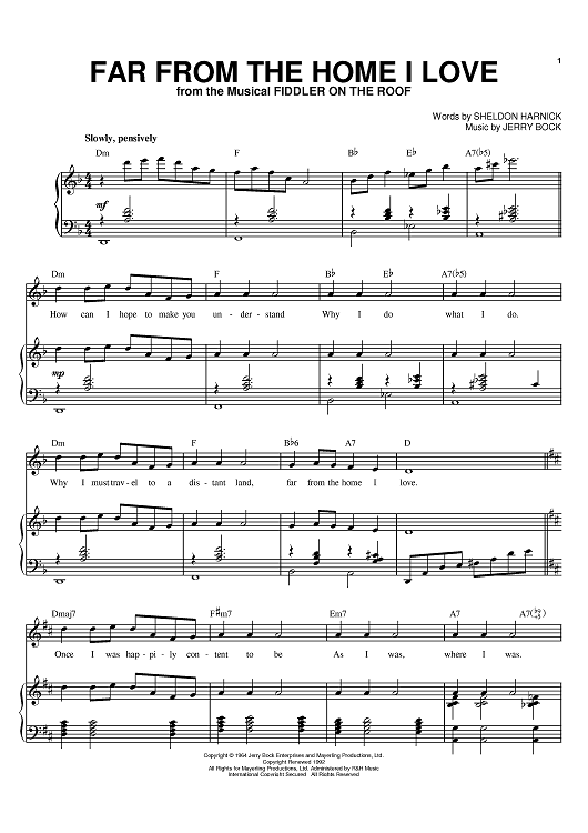Digital Sheet Music for Far From The Home I Love by Jerry Bock, Sheldon Harnick, Joan Frey Boytim scored for Piano/Vocal/Chords; id:402376