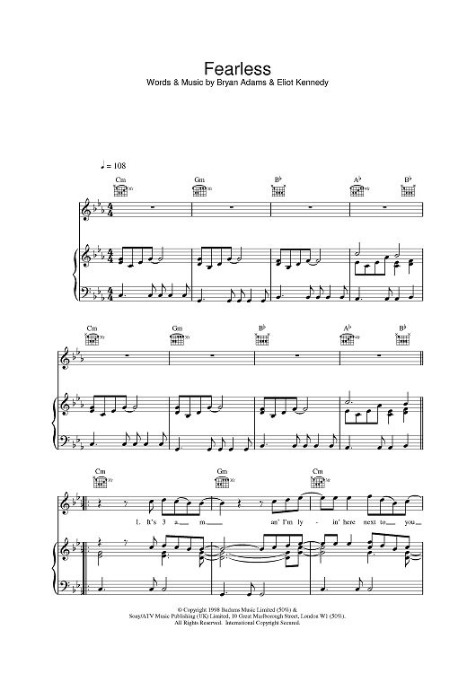 Digital Sheet Music for Fearless by Bryan Adams, Eliot Kennedy scored for Piano/Vocal/Chords; id:376778