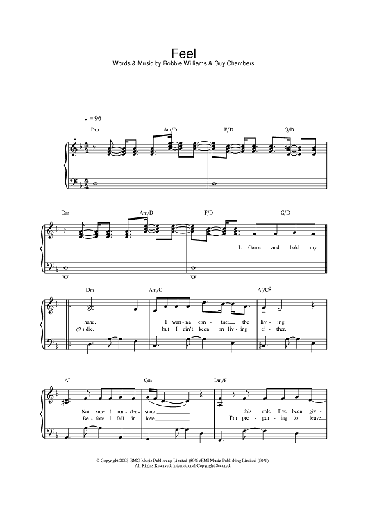 Digital Sheet Music for Feel by Robbie Williams, Guy Chambers scored for Piano/Vocal/Chords; id:394930