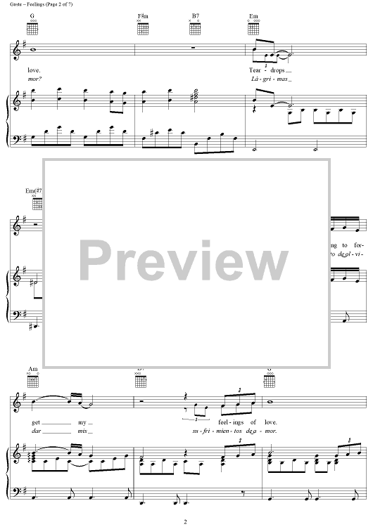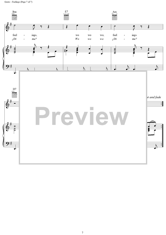 Digital Sheet Music for Feelings (¿Dime?) by Morris Albert, Louis Gaste, Thomas Fundora scored for Piano/Vocal/Chords; id:116294