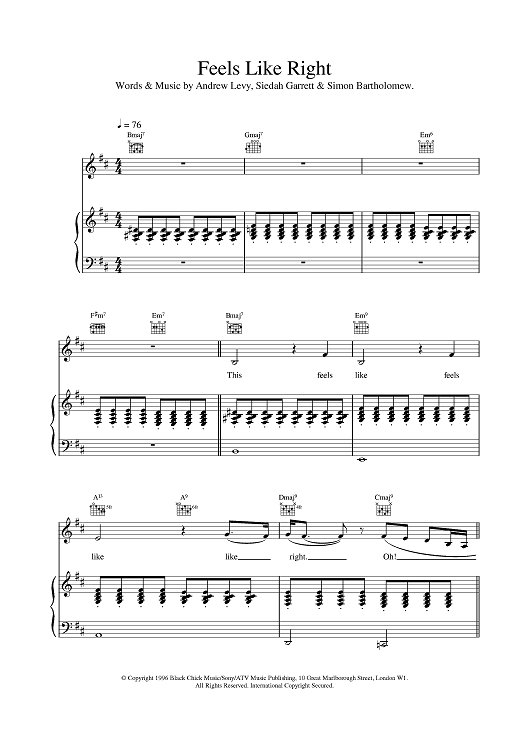 Digital Sheet Music for Feels Like Right by Brand New Heavies scored for Piano/Vocal/Chords; id:376495
