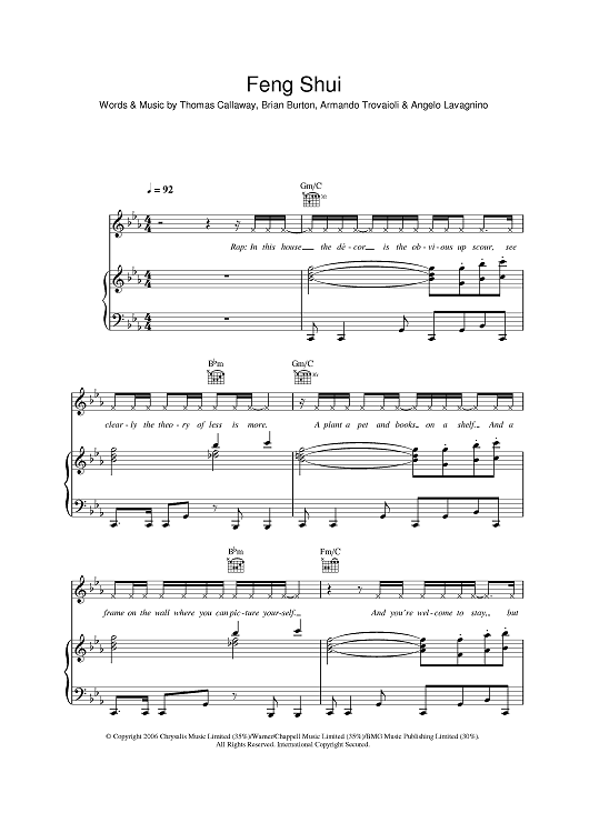 Digital Sheet Music for Feng Shui by Gnarls Barkley, Danger Mouse, CeeLo Green, Angelo Lavagnino, Armando Trovaioli scored for Piano/Vocal/Chords; id:394274